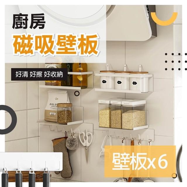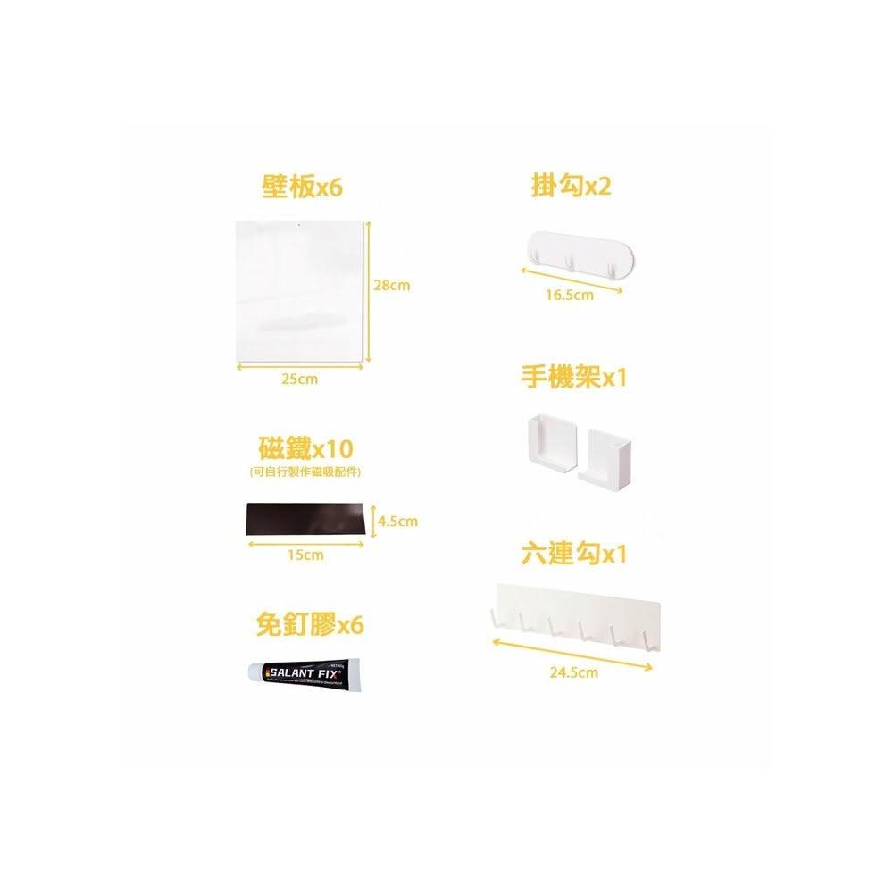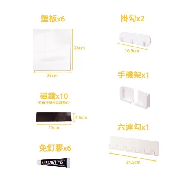 DIY磁吸琺瑯壁板 6片組合含磁吸配件 好清理 可磁吸 收納 掛勾 手機架 磁鐵 附免釘膠
