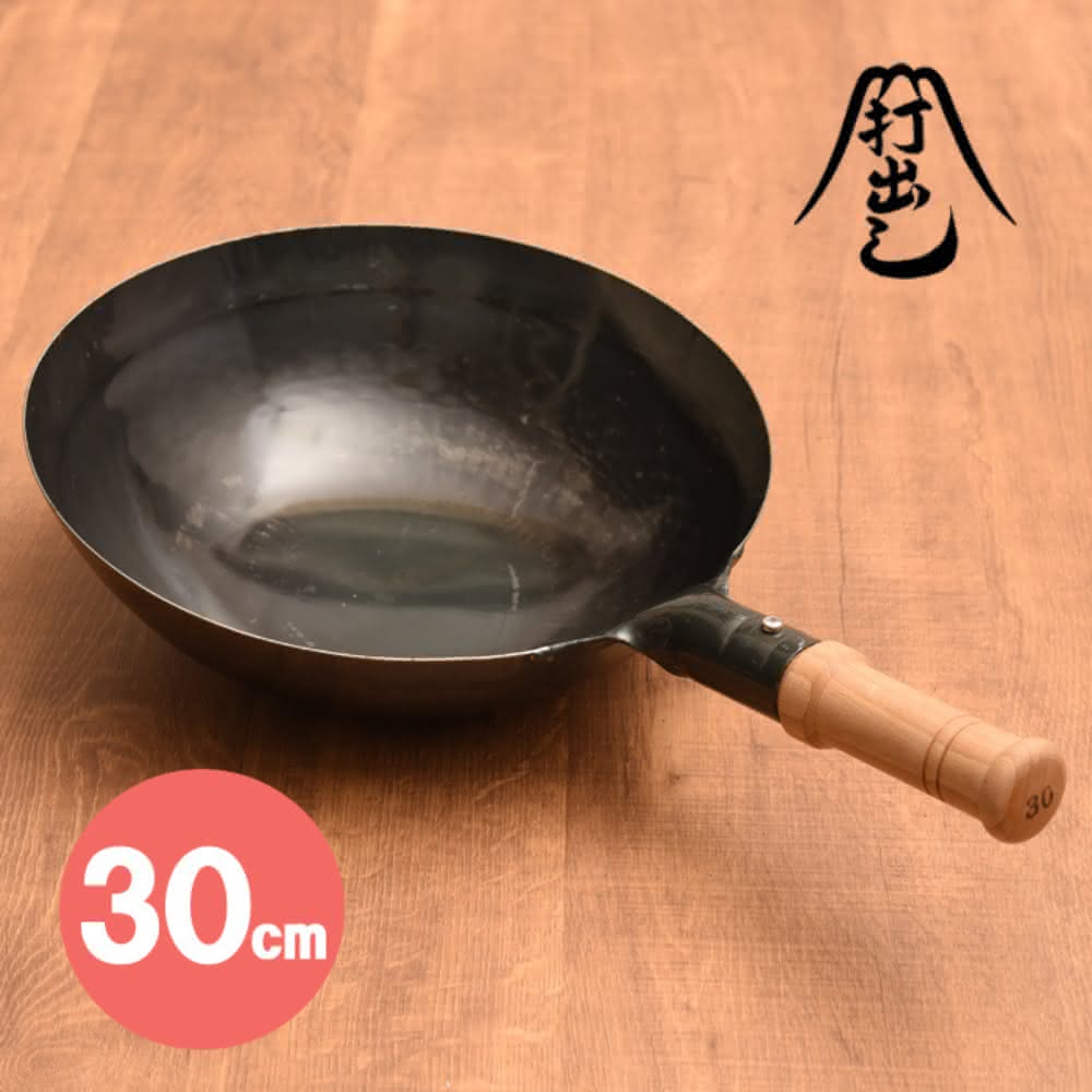日本木柄炒鍋30cm板厚1.2mm(交換禮物 聖誕禮物 鐵鍋 中華鍋 山田工業所)