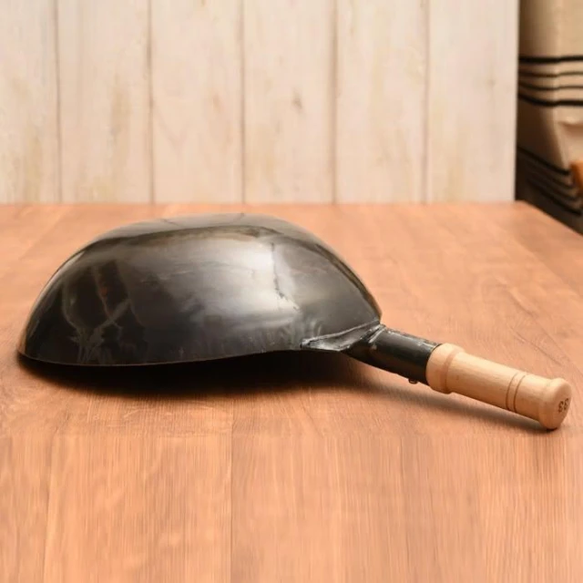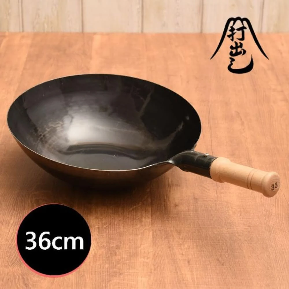 日本木柄炒鍋36cm板厚1.2mm(交換禮物 聖誕禮物 鐵鍋 中華鍋 山田工業所)