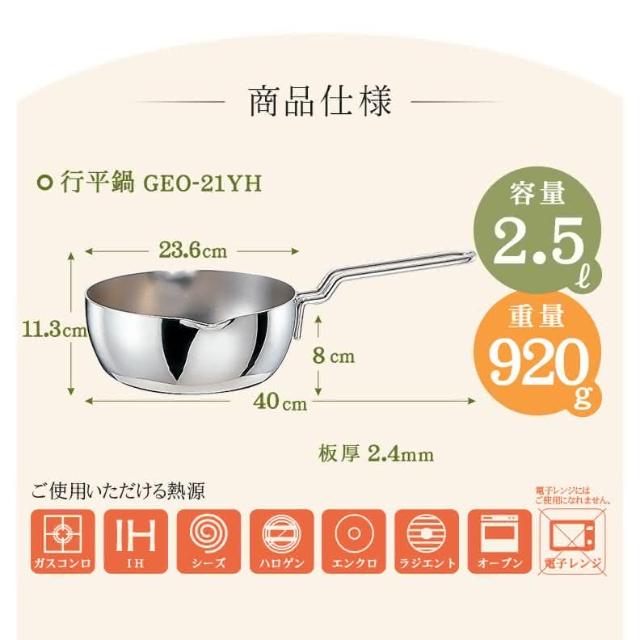 日本宮崎製作所片手鍋21cm (交換禮物 聖誕禮物 GEO-21YH 行平鍋 炒鍋 IH對應)