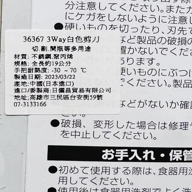 日本 3Way 白色剪刀 X 2入組(廚房剪刀 事務剪刀 餐飲剪刀)