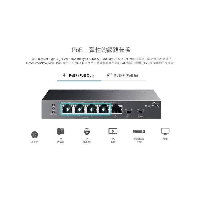 MOMO幣回饋 TL-SG1005P-PD 5埠 Gigabit PoE交換器 網路交換器 POE中繼 需用POE供電