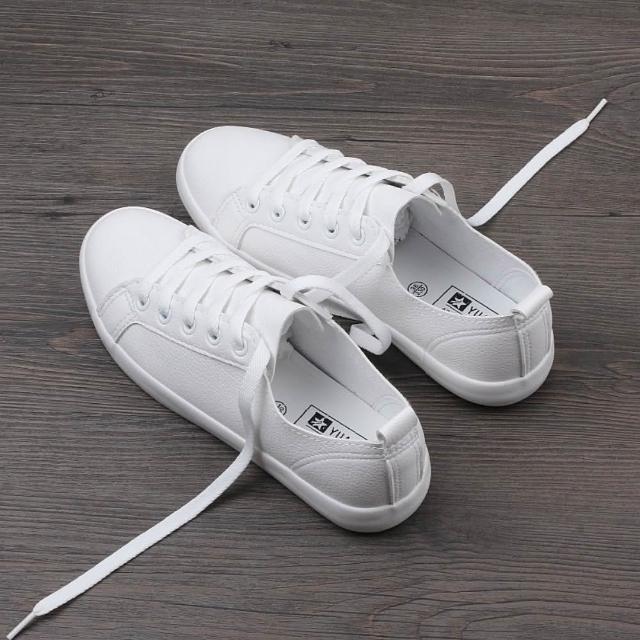 YXY文青基礎款情侶款軟皮小白鞋街拍婚拍流行款情侶小白鞋、校園休閒鞋