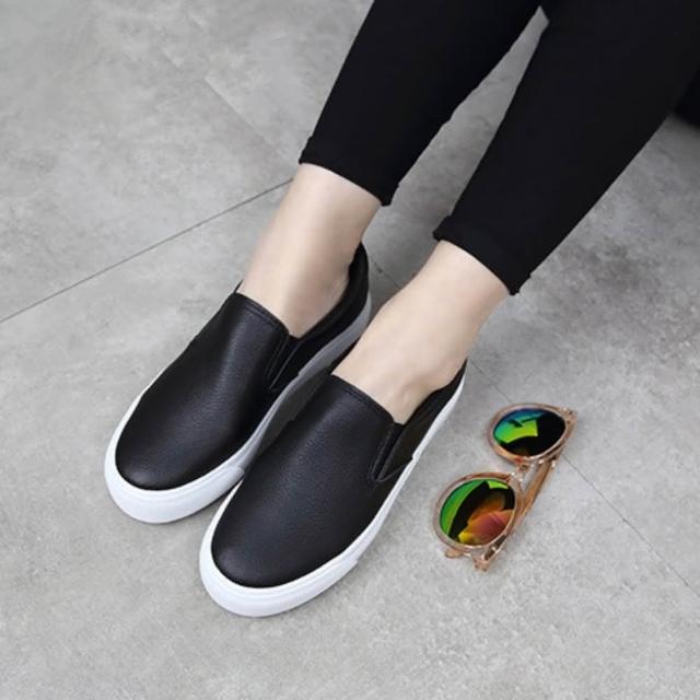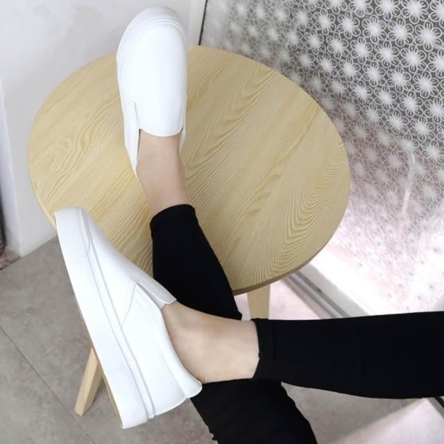 YXY休閒風厚底小白鞋軟皮板鞋 素色穿搭增高顯瘦休閒鞋部落格熱推懶人樂福鞋