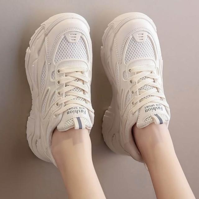 小香風百搭款ins鬆糕鞋街拍厚底運動休閒鞋 交叉綁帶網面透氣韓風休閒老爹鞋外穿時尚感
