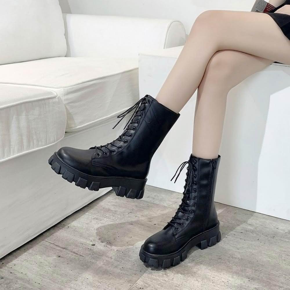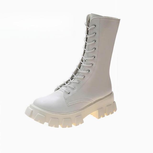 時尚11孔馬丁鞋 機車馬丁鞋 綁帶顯瘦顯高 時尚鋸齒厚底靴 簡約馬丁鞋