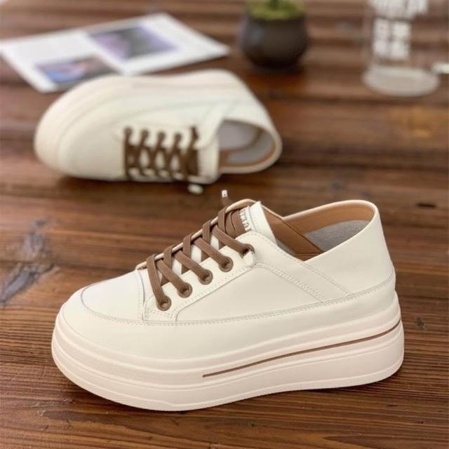5CM厚底增高小白鞋 免綁帶軟皮兩穿式 鬆糕鞋 包色款休閒增高鞋