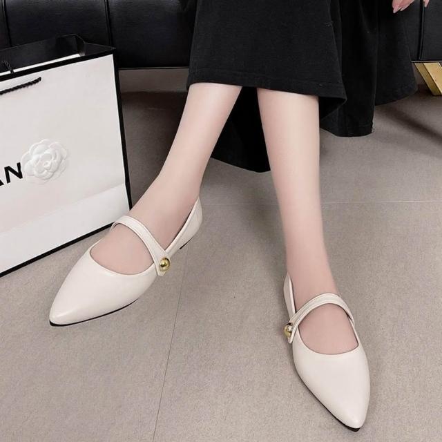 百搭柔軟好穿 一字帶平底尖頭低跟鞋 尖頭淺口鞋 瑪莉珍鞋櫃姐上班族最愛☀氣質款大尺碼41 包色款