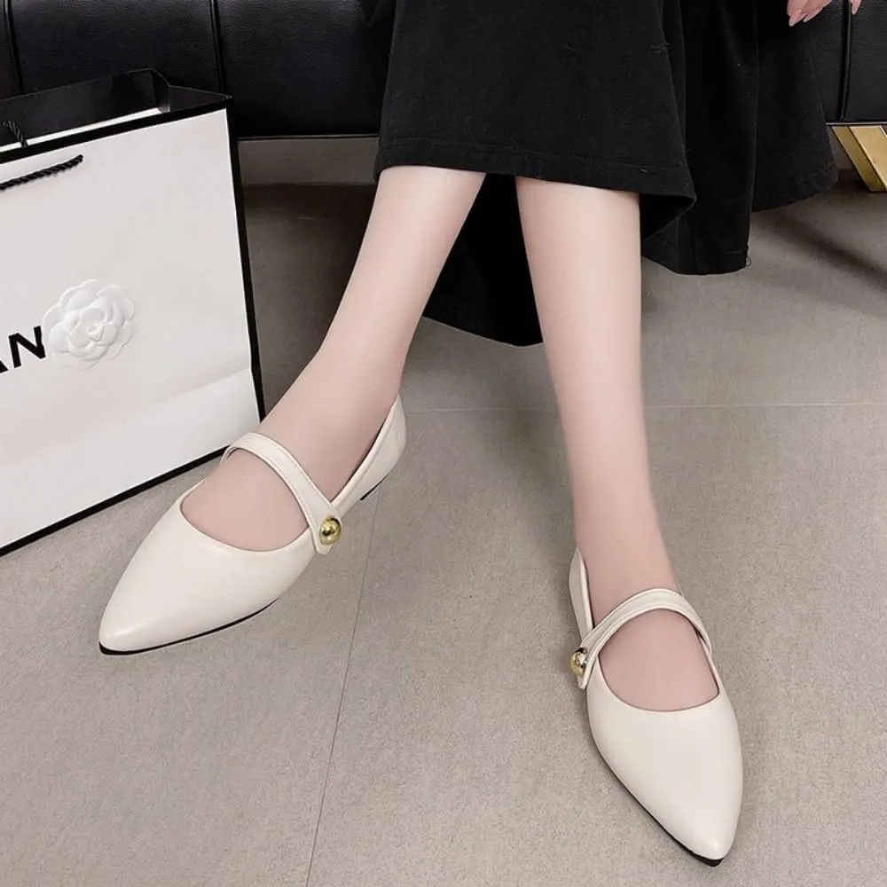 百搭柔軟好穿 一字帶平底尖頭低跟鞋 尖頭淺口鞋 瑪莉珍鞋櫃姐上班族最愛☀氣質款大尺碼41 包色款