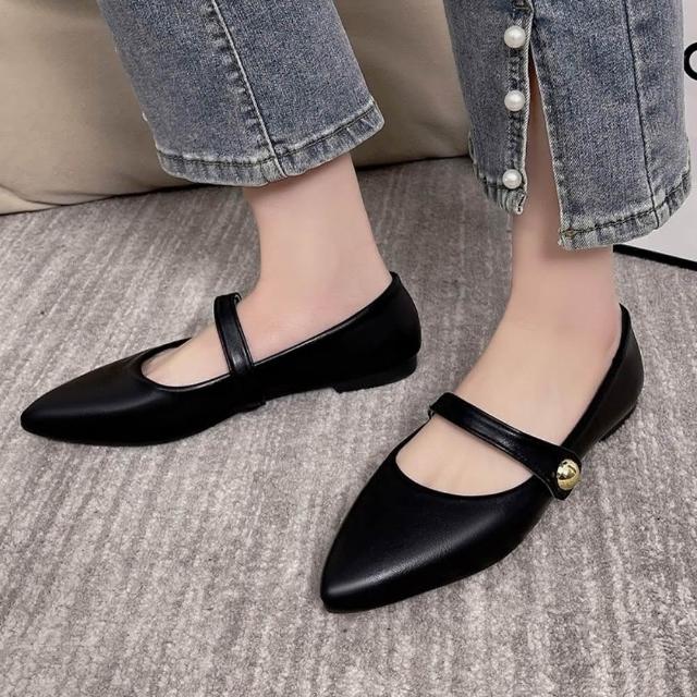 百搭柔軟好穿 一字帶平底尖頭低跟鞋 尖頭淺口鞋 瑪莉珍鞋櫃姐上班族最愛☀氣質款大尺碼41 包色款