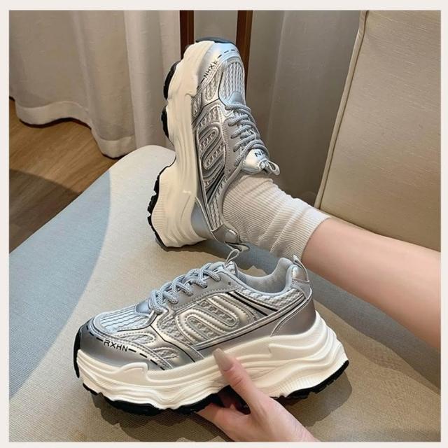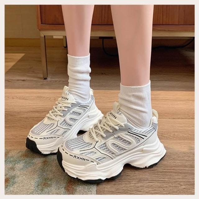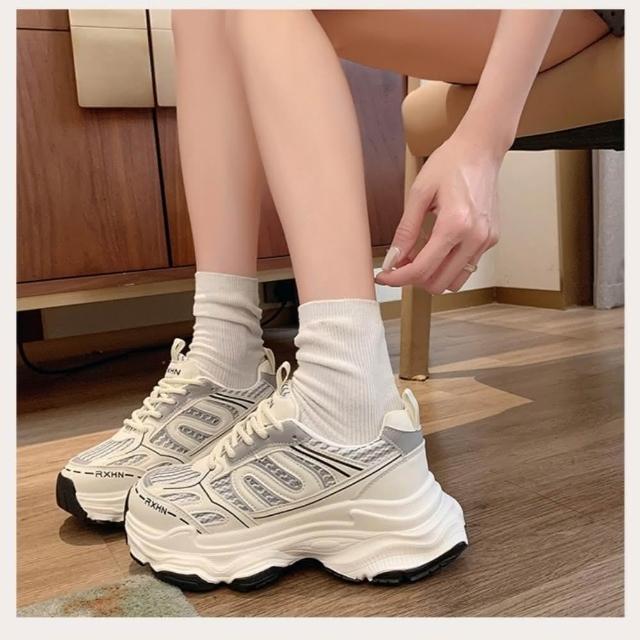 韓版增高運動休閒鞋 厚底老爹鞋 流線純色包色款休閒鞋 透氣萊卡厚底鞋 增高鞋休閒鞋ins百搭休閒運動鞋