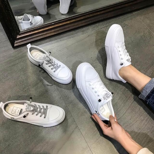 皮面小白鞋 懶人鞋 免綁帶小白鞋 免繫帶小白鞋 休閒百搭款 小白鞋 板鞋