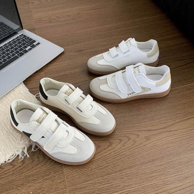 休閒百搭德訓鞋 復古款 魔鬼氈小白鞋 休閒 運動白鞋 繫帶魔鬼氈款 軟底舒適好穿脫