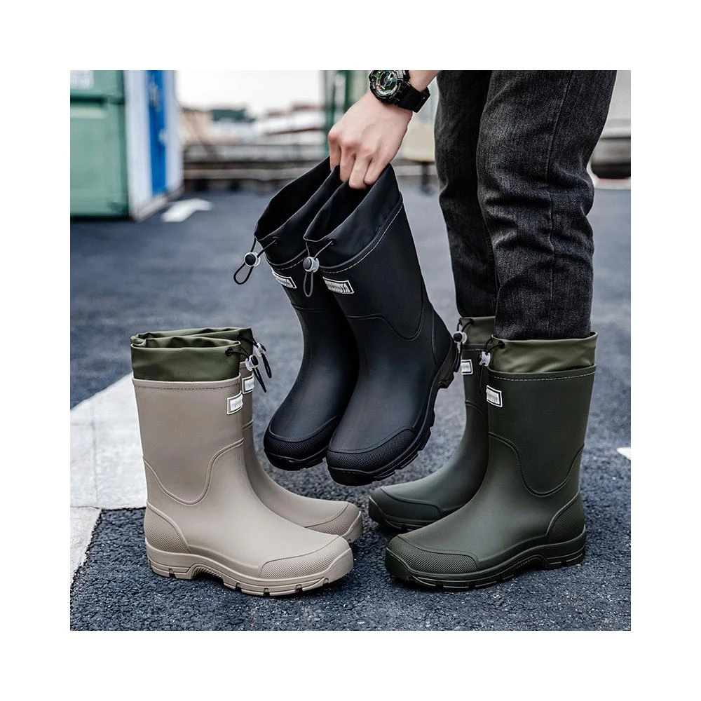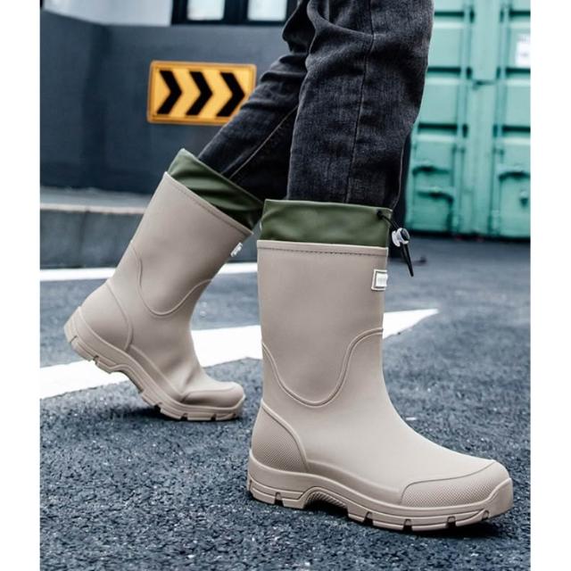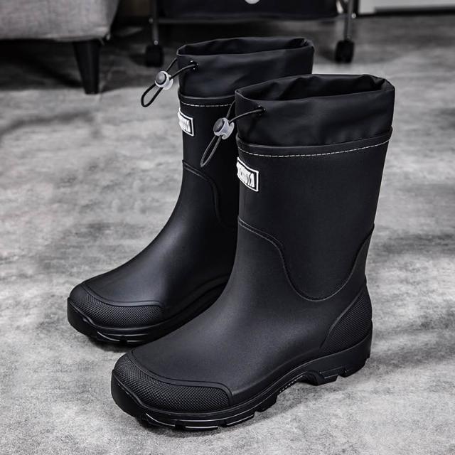 男款 束口中筒雨靴 收口防雨防水鞋 工作廚房膠鞋 洗車釣魚水鞋 農作雨鞋 機車雨鞋