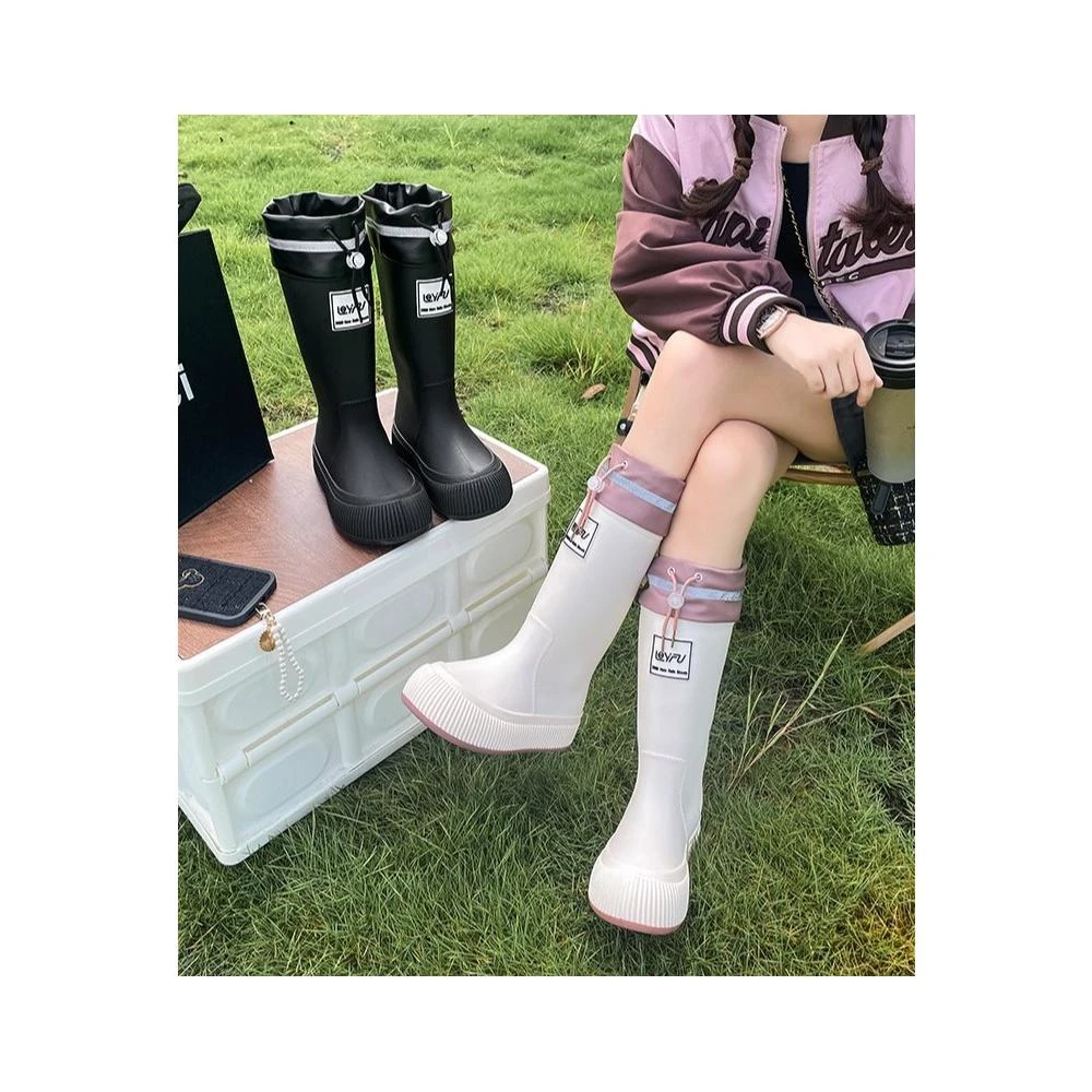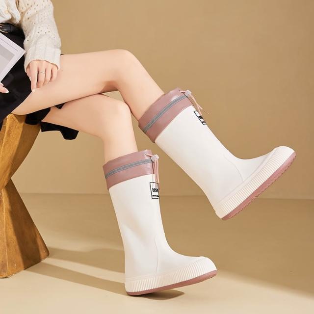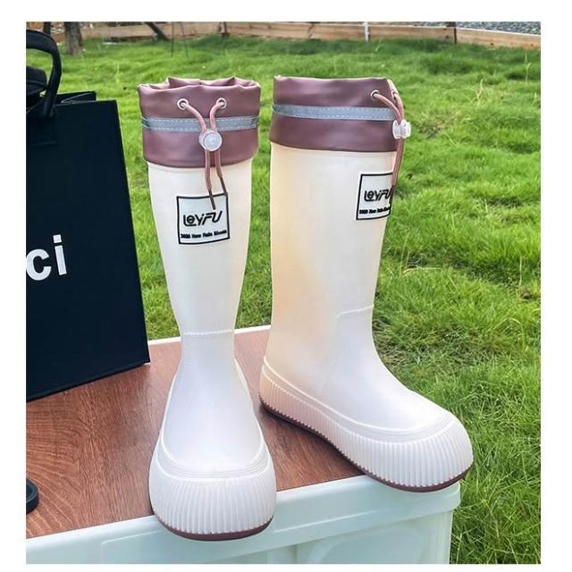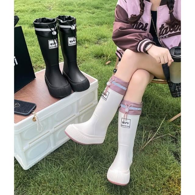 厚底束口雨靴 抽繩中長筒雨靴 甜美系女時尚雨鞋 防水束口加厚防滑軟底膠鞋