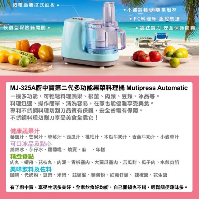 Wongdec 王電工業 廚中寶第二代單功能果菜料理機(MJ-325A 櫻花粉 - 果汁機 果菜汁機 冰沙機 果菜食物料理機)