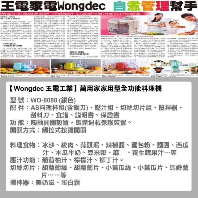 Wongdec 王電工業 萬用家家用型全功能料理機(WO-8088 銀色 - 果汁機 果菜汁機 冰沙機 果菜食物料理機)