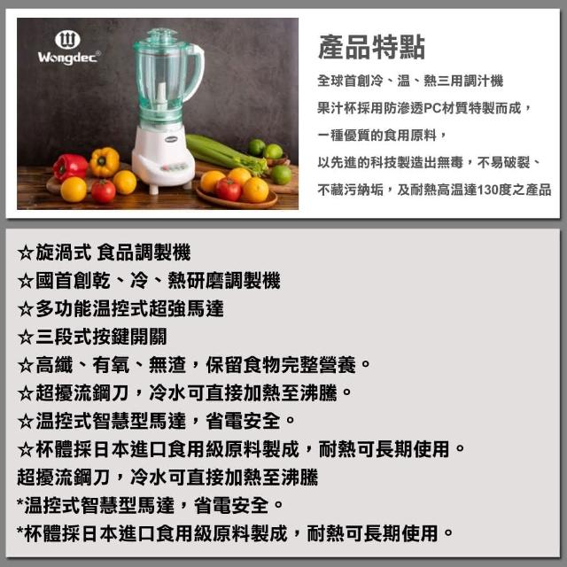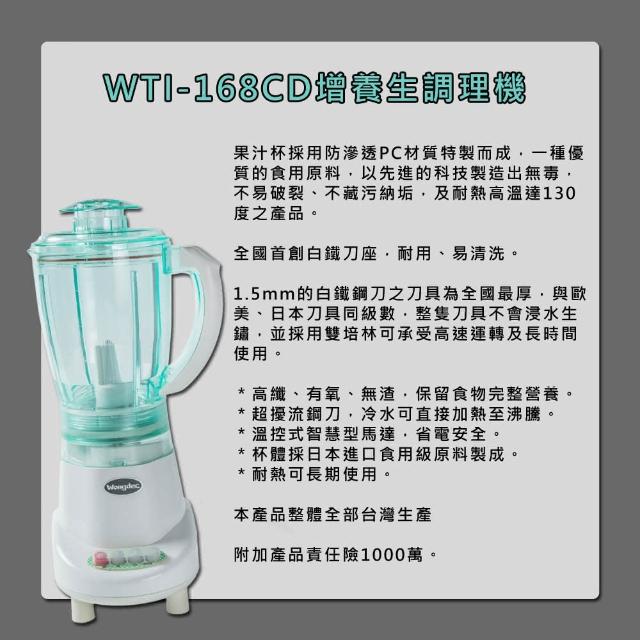 Wongdec 王電工業 增氧生調理機(WTI-168CD -果汁機 果菜汁機 冰沙機 果菜食物料理機)