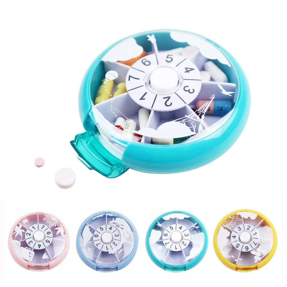 fullicon 護立康7日幸運旋轉圓形藥盒(MB017盒我去旅行-保健食品/藥品/小物收納盒)