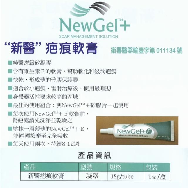 NewGel+ 新醫+E疤痕軟膏/矽凝膠(15g) 添加維生素E 除疤凝膠 疤痕凝膠