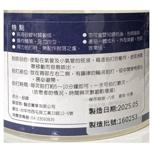 - 產品一體成形外型美觀拍痰效果佳
