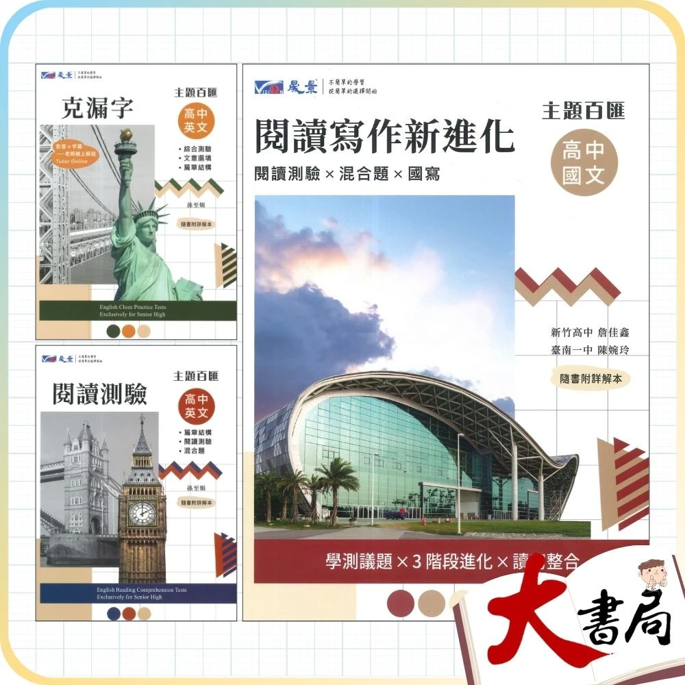 ●大書局●晟景高中『閱讀測驗 / 克漏字 / 閱讀寫作新進化』高中國文英文 (高一~高三適用) 主題百匯