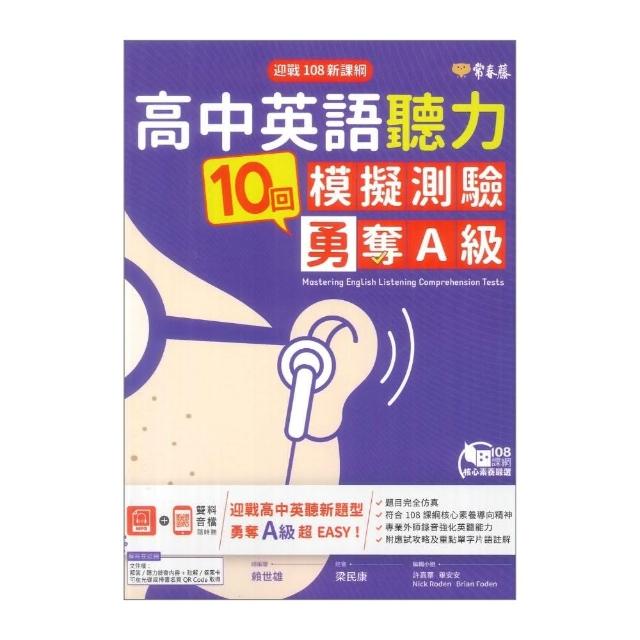 ●大書局●常春藤『高中英語聽力10回模擬試題』勇奪A級 MP3 + QR Code雙料音檔隨時聽 升大學_108課綱