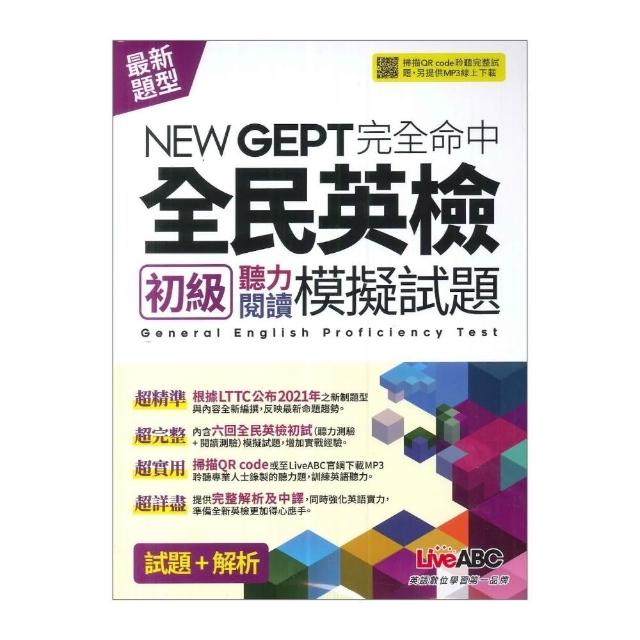 ●大書局●LiveABC 檢測英語 NEW GEPT 完全命中『全民英檢「初級」聽力閱讀模擬試題』6回模擬試題+解析+朗讀MP3