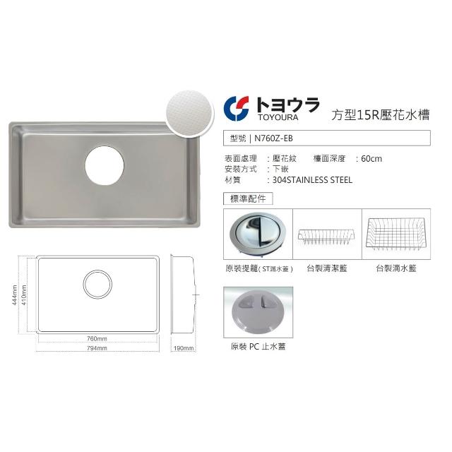 歡迎詢問 Toyoura日本76cm N760Z-EB 壓花 方型不鏽鋼水槽 壓花款 此商品為水槽,單純含運,不提供安裝服務