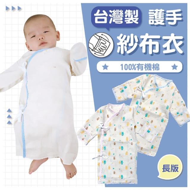 台灣製 有機棉印花加長版高密度 紗布衣 新生兒紗布衣(100%純棉 新生兒服 嬰兒衣服)