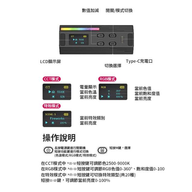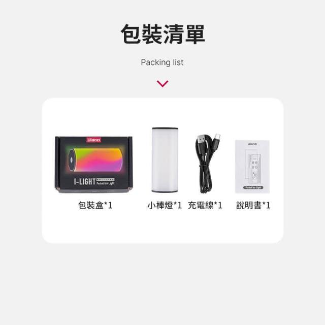 Ulanzi 優籃子ulanzi i-Light RGB小光棒 6W三色溫 磁吸式 Type-C充電口 1/4螺口 手持補光棒 攝影燈 拍照/錄影