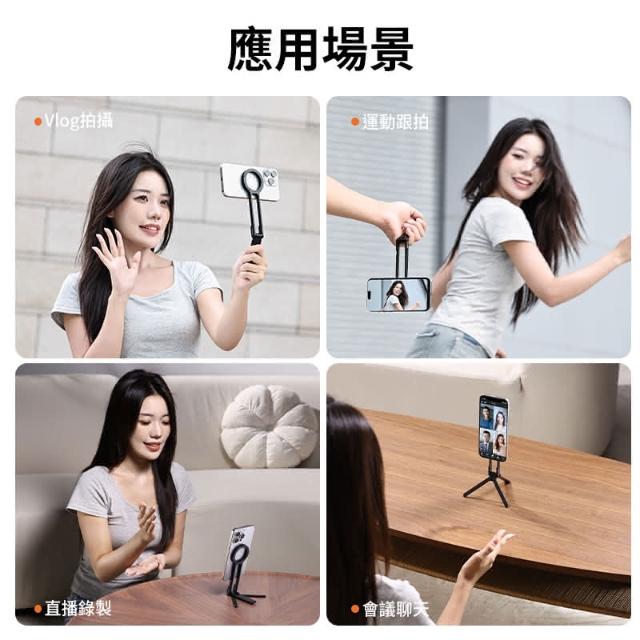 Ulanzi 優籃子Ulanzi MA30登山扣手機支架 黑色/紅色 Magsafe磁吸自拍桿 自拍棒 口袋折疊三腳架 桌上型立架 Vlog 直播 攝影