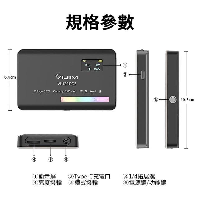 Ulanzi 優籃子Ulanzi VL120 RGB版LED燈 口袋燈 持續燈 補光燈 1/4螺絲孔 Type-C充電 Vlog/直播攝影/自拍