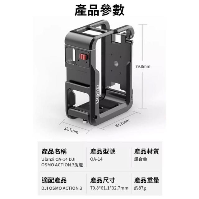 Ulanzi 優籃子Ulanzi OA-14 DJI OSMO ACTION 3/ACTION 4 專用金屬兔籠 快拆卡扣 側翻 冷靴 擴充 拓展 保護框 保護殼