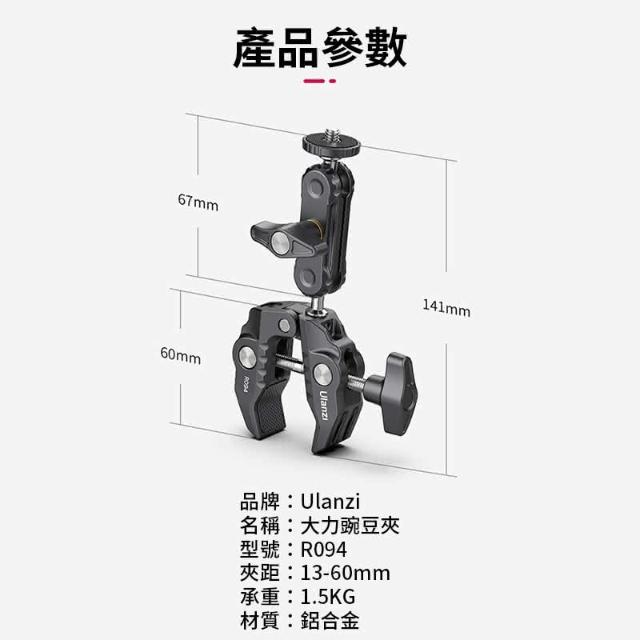 Ulanzi 優籃子Ulanzi R094 多功能大力夾碗豆夾 C型夾 相機雲台 魔術手臂 1/4 3/8螺孔 相機/單眼/微單 隨處夾
