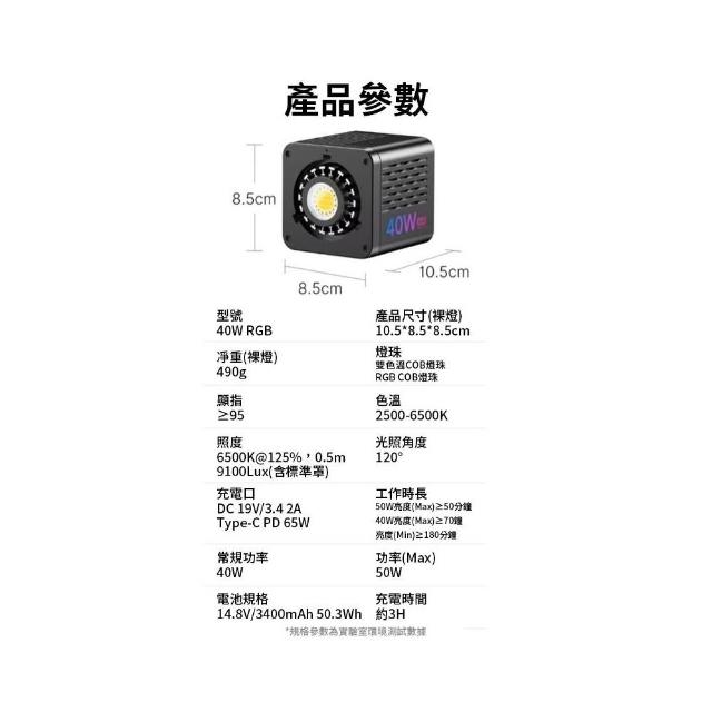 Ulanzi 優籃子Ulanzi L024 40W RGB COB LED補光燈 PRO(含電源線) 3400mAh 持續燈 背景 直播