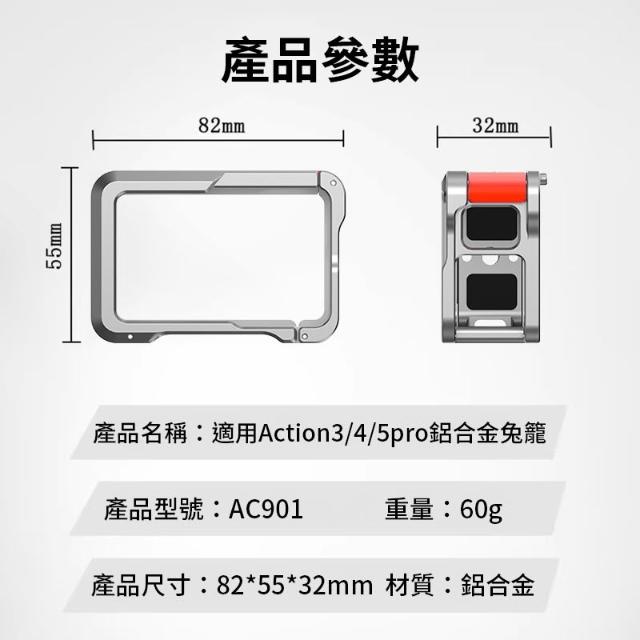 GORIG 適用DJI Osmo Action3/4/5 Pro兔籠 運動相機兔籠 鋁合金保護框 拓展框 側邊快拆 1/4接口 Vlog 直播 錄影 Action 5 Pro Rabbit Cage