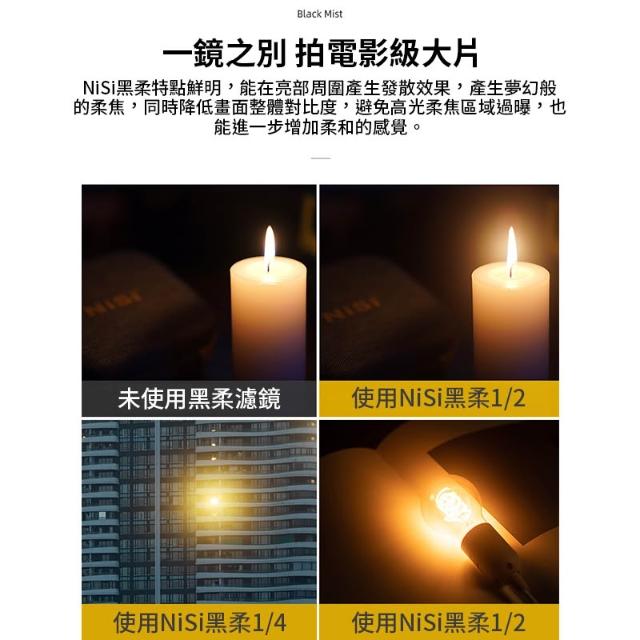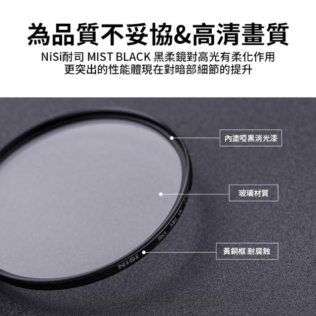 NISINISI耐司 黑柔焦濾鏡 1/8 黑柔焦鏡 柔光濾鏡 朦朧鏡 49mm/52mm/67mm/72mm/77mm/82mm Black Mist black soft filter