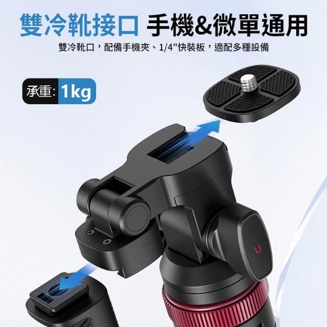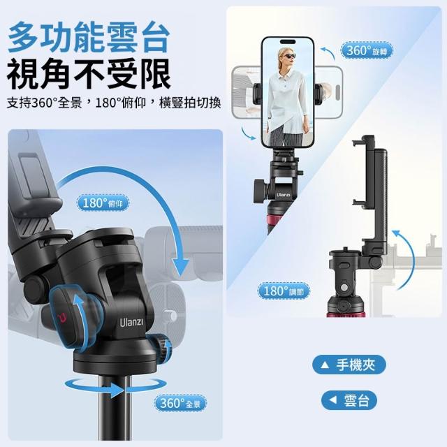 Ulanzi 優籃子Ulanzi MT-78 冷靴快拆三腳架 38-185cm 承重1kg 雙機位 藍牙 冷靴 延伸桿 俯仰 橫豎拍 Vlog 自拍 直播 抖音 手機攝影支架 手機助拍器