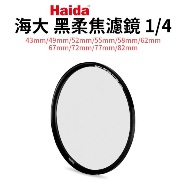 Haida海大 黑柔焦濾鏡 1/4 43mm/49mm/52mm/55mm/58mm/62mm/67mm/72mm/77mm/82mm 黑柔焦鏡 柔光鏡 朦朧鏡 人像柔化鏡