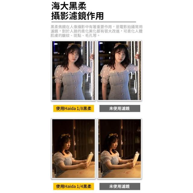 Haida海大 黑柔焦濾鏡 1/8 52mm/58mm/62mm/67mm/72mm/77mm/82mm 黑柔焦鏡 柔光鏡 朦朧鏡 人像柔化鏡