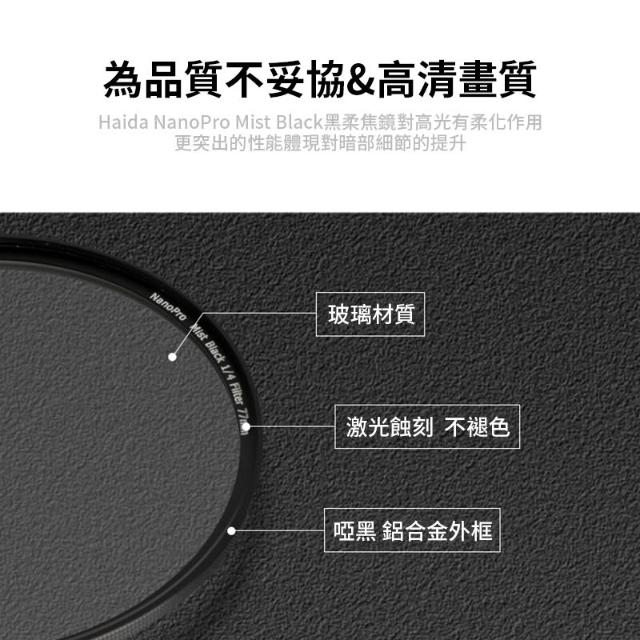 Haida海大 黑柔焦濾鏡 1/8 52mm/58mm/62mm/67mm/72mm/77mm/82mm 黑柔焦鏡 柔光鏡 朦朧鏡 人像柔化鏡