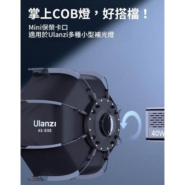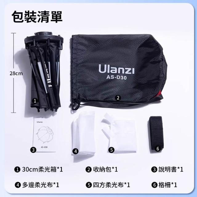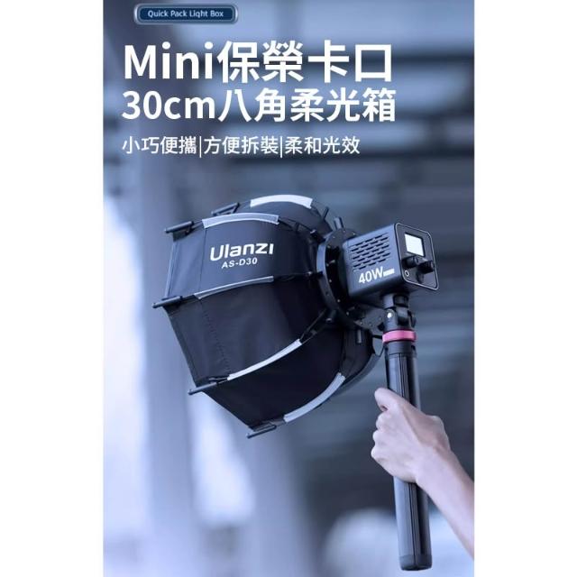 Ulanzi 優籃子Ulanzi AS-D30 30cm 迷你保榮八角柔光罩 柔光箱 僅適用LT028 L023 L024 40W棚燈 Octagonal Softbox L083GBB1(mini保榮口 非保榮口)