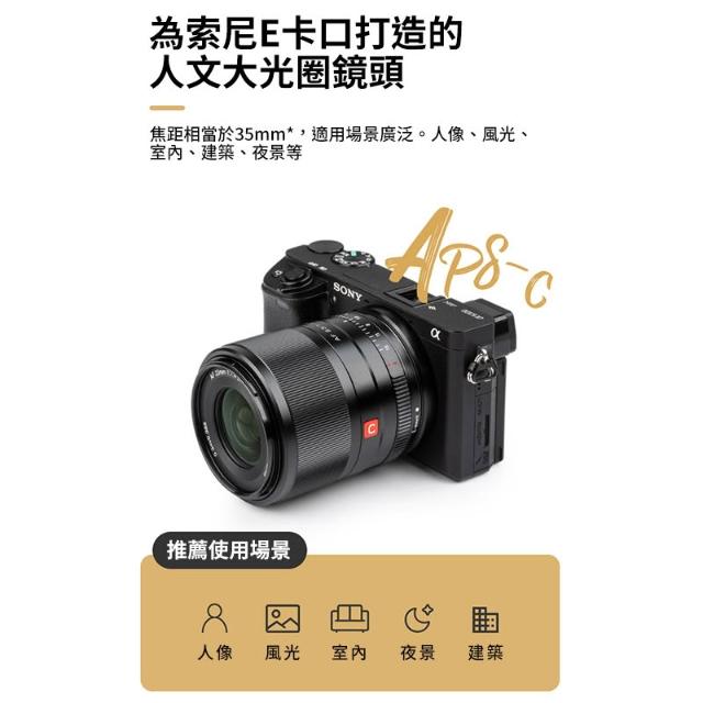 VILTROXViltrox唯卓仕 23mm F1.4 SONY E卡口 大光圈鏡頭 NEX E-mount APS-C STM 自動對焦 A7 A7R A7C A7RIII A7RIV A9 A6400 A6500 A6600