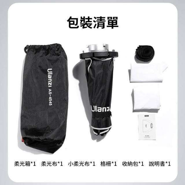 Ulanzi 優籃子Ulanzi AS4545 方形保榮口柔光罩 45cm 方形柔光箱 控光箱 無影罩 適用補光燈 COB燈 攝影燈 直播 外拍 棚拍 Softbox Bowen