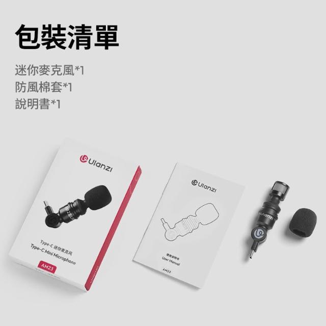 Ulanzi 優籃子Ulanzi AM23 Type-C迷你麥克風 全指向 外接麥克風 即插即用 適用Mac Mini 手機 平板 電腦 運動相機 Vlog 直播 採訪 錄音 會議