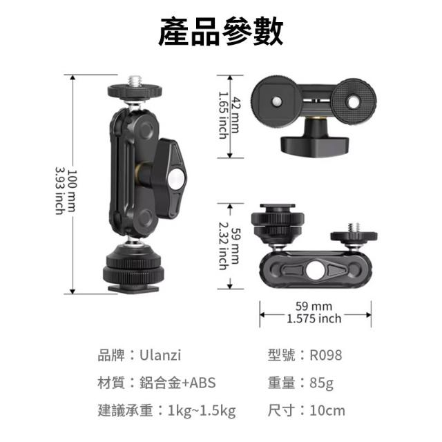 Ulanzi 優籃子Ulanzi UURig R098 冷靴豌豆莢 承重1.5kg 1/4螺絲 冷靴座 固定座 魔術手臂 錄影支架 手機夾 補光燈 閃光燈 麥克風 監視 攝影