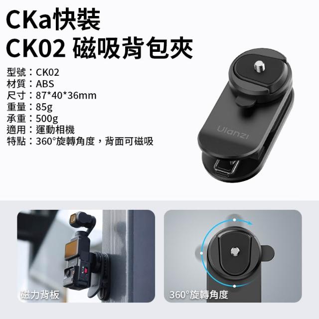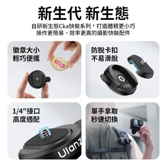 Ulanzi 優籃子Ulanzi CKa快裝-CK02 磁吸背包夾 1/4 快拆快裝 轉接 第一人稱視角 胸前固定 適用運動相機 GoPro
