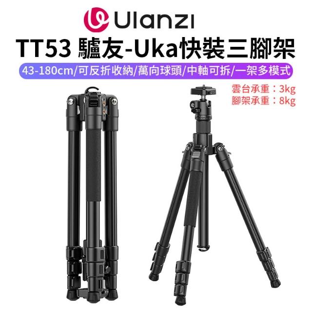 Ulanzi 優籃子【Ulanzi TT53 驢友-Uka快裝三腳架】43-180cm 可拆中軸 1/4 阿萊定位孔 反折腳架 相機挑桿 自