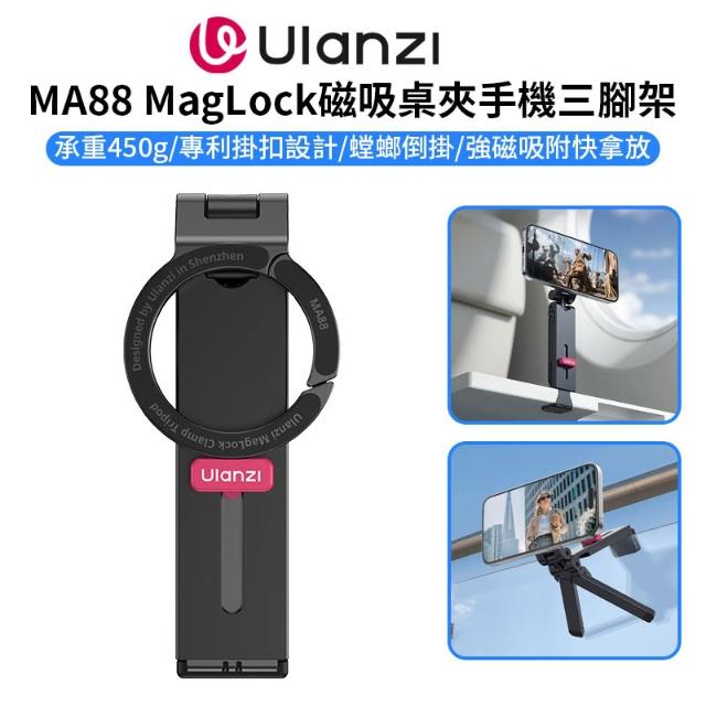 Ulanzi 優籃子【Ulanzi MA88 MagLock磁吸桌夾手機三腳架】Magsafe 螳螂腳架 折疊支撐架 倒掛手機腳架 自拍棒